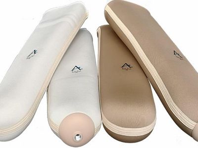 硅膠內(nèi)襯套的延展性,可以溫和柔軟的緊緊裹住肢體截?cái)嗵?,起到保護(hù)殘端皮膚組織的作用,防止了斷肢在假體腔內(nèi)的摩擦,降低乃至清除部分接觸壓力,給皮膚敏感區(qū)一個(gè)舒服的軟膠墊。因而,徒步時(shí)能夠顯著減輕肌膚表層受的摩擦不適,因?yàn)楣枘z墊把一些應(yīng)力從肌膚處傳送到硅膠內(nèi)襯套的外面,變?nèi)趿送刺酆蜌埗颂幖∧w損壞,這類柔韌度很好的硅膠內(nèi)襯套會(huì)使高位截肢者覺得十分舒服。