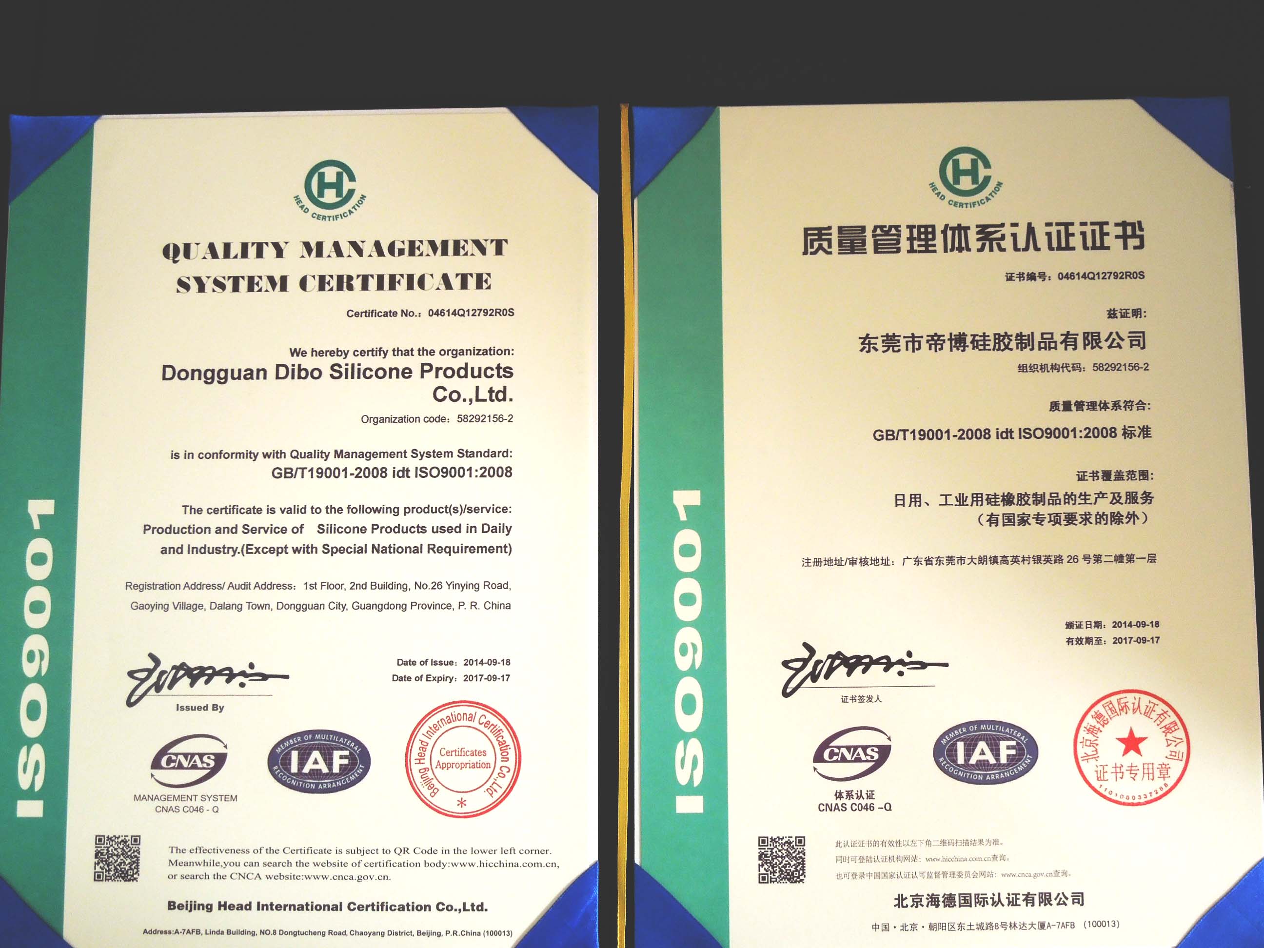 目前,公司已經(jīng)順利通過(guò)ISO9001質(zhì)量管理體系認(rèn)證,并取得相關(guān)證書(shū),