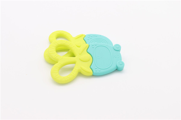 卡通青蛙硅膠牙齒矯正器簡稱硅膠牙膠,磨牙棒,此款牙膠主要采用雙色粘接成型工藝制作,有良好的生動性與立體感,讓嬰兒寶寶愛不釋手,材料安全環(huán)保,可放心與口腔身體皮膚接觸。